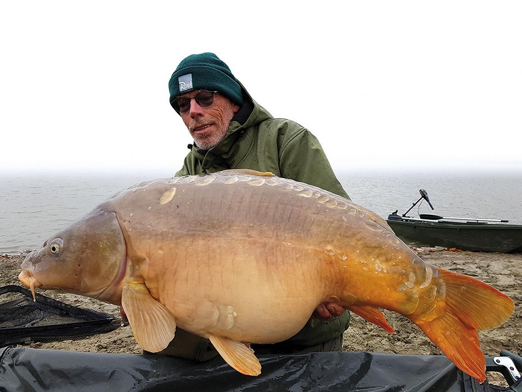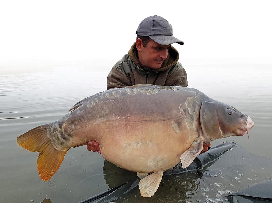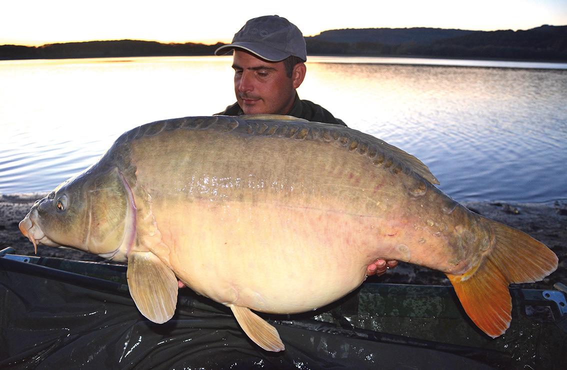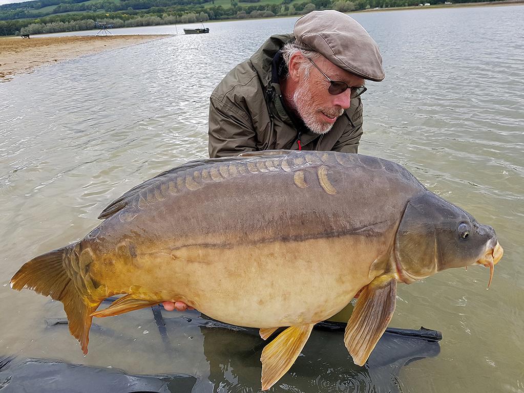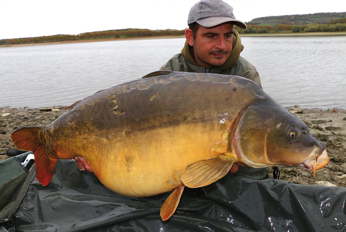 Eh bien, tout s’est déroulé exactement comme nous l’avions imaginé. Nous avons pêché une dizaine de jours de 9h30 le matin (et parfois pas avant 11h30 le matin à cause du brouillard !) à 19h30 ou 20h15. Cela dépendait de l’activité car après 17h30 nous ne ramenions plus les lignes sur la zone pour ne pas la déranger dans les dernières heures de pêche. Nous avons ainsi pris 86 carpes de 8 à 22,8 kg pour un total de 95 départs ! Miroirs, cuirs, communes, écaillures sympas, bref, un tableau très varié comme on aime. Chaque soir nous remettions une couche de billes sur la zone, et à partir de 22h00 les carpes sautaient vraiment sur l’amorce mais n’étaient pas dérangées par nos lignes, ce qui nous a permis de les conditionner à fond. Le matin en emmenant les lignes nous faisions de bons rappels autour des montages. On voyait régulièrement des carpes faire des remous ou sortir la tête hors de l’eau à une bonne centaine de mètres derrière notre zone amorcée.  Chaque jour, la première touche s’annonçait seulement après une ou deux heures de pêche, suivie de plusieurs touches l’après-midi avec une bonne accélération d’activité en fin de journée, à partir de 17h30. Chez les autres carpistes il ne se passait pas grande chose la journée, et même la nuit ils avaient du mal à faire plus d’un ou deux poissons. Il y avait clairement trop de pression, trop de stress sur leurs zones de pêche.