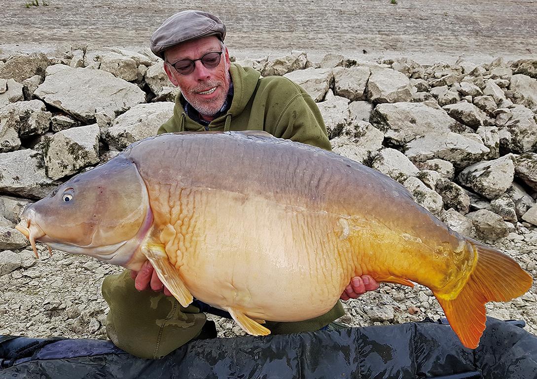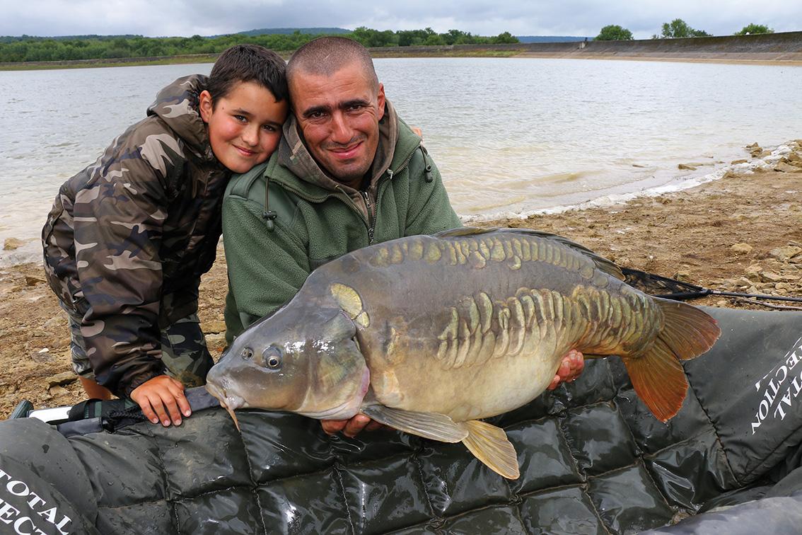 Deuxième poisson : 28,4 kg ! Ce serait la plus grosse carpe encore vivante du lac à son nouveau poids record.
