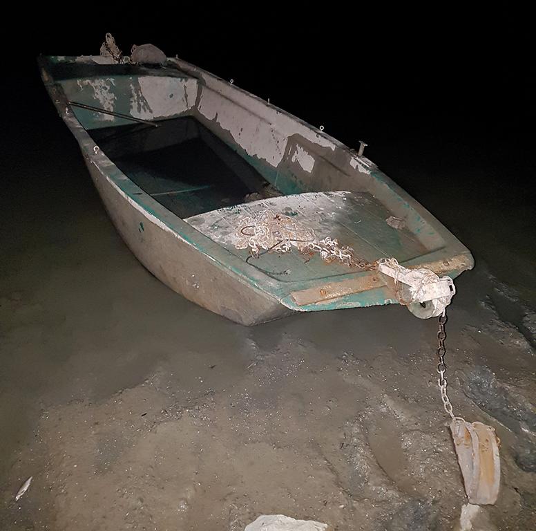 Quelques jours auparavant le barragiste avait ramené une vieille barque coulée sur notre berge, une vraie épave qu’il avait déposé pas loin d’où on pêchait. J’ai demandé à Christophe s’il pouvait voir si la barque flottait encore et si nos rames s’adaptaient dessus. Quelques minutes plus tard Christophe est arrivé avec la barque qu’il traînait derrière lui en bordure. Nous avons pris une épuisette et nous sommes montés dedans, moi avec ma canne devant sur le nez du bateau et Christophe au milieu pour ramer. Il avait pris une lampe frontale mais moi je n’en avais pas, alors que maintenant il faisait noir. Comme il avait les dos tourné vers moi pour ramer, j’avançais dans le noir absolu. Le bateau avait du mal à avancer mais petit à petit nous nous sommes rapprochés de l’endroit où la carpe était bloquée. Quand j’ai eu le sentiment qu’on n’était plus très loin du poisson j’ai demandé à Christophe d’arrêter de ramer et de m’éclairer avec sa lampe. Il s’est retourné et là j’ai eu très peur ! En fait, non seulement le nez du bateau était au ras de la surface de l’eau mais en plus il y avait une fuite et le bateau, une simple coque en polyester, était en train de se remplir ! Du fait que nous portions des cuissardes nous n’avions pas senti que le bateau se remplissait doucement d’eau. Quelle connerie ! Ne faites jamais une chose pareille !