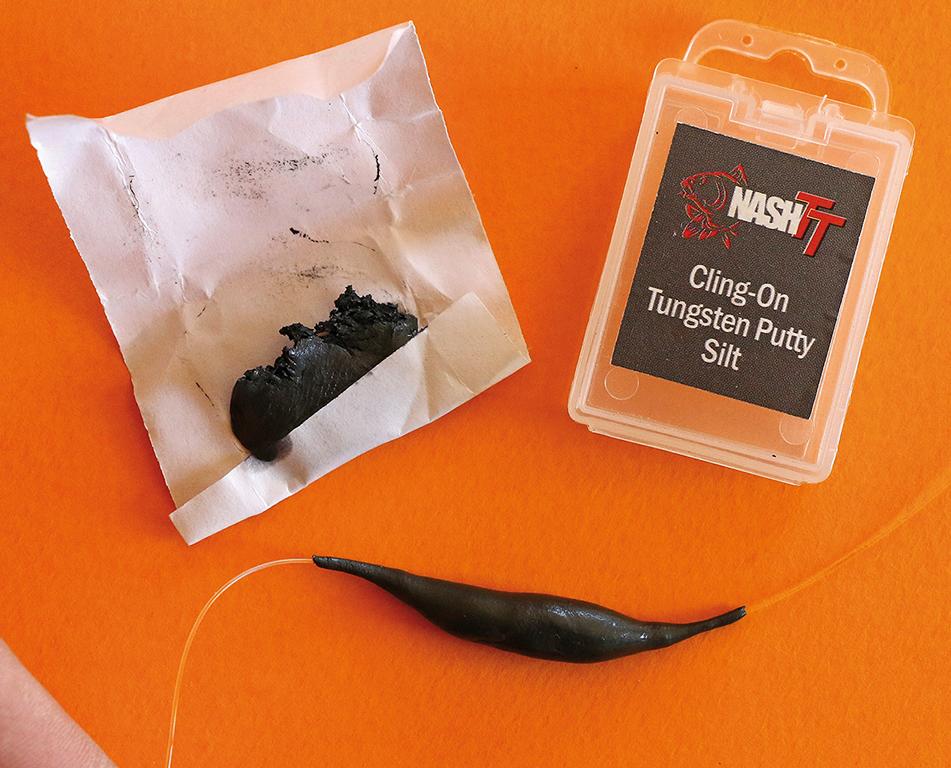 Depuis l’été 2017 j’ai décidé de ne plus relier ma tresse directement au Protect Leader et d’utiliser une tête de ligne d’une longueur de 12 à 15m en monofilament dense qui se plaque bien sur le fond. Avant, je n’utilisais des têtes de lignes en gros diamètre que pour les postes encombrés, mais désormais je les utilise aussi quand je pêche en tresse à distance, même sur des zones bien dégagées ou dépourvues d’obstacles. Dans ce dernier cas j’opte pour le Millenium Head Line en 0.50mm qui est encore relativement souple, très résistante à l’abrasion, transparente et se plaque comme une pierre sur le fond. En milieu encombré je la combine quand même avec un Protect Leader, sinon je fais sauter ce dernier et pêche en tête de ligne directement jusqu’au montage. Cette tête de ligne me fait gagner énormément en discrétion sur la zone pêchée, et c’est exactement ce que je recherche. De plus, à environ 60 à 70 cm au-dessus du plomb je monte une grosse boule de Tungsten Putty sur la tête de ligne. J’utilise pour cela le Cling-On de chez Nash, la moitié d’une boîte par ligne ! Ce Putty est réutilisable et jusqu’à maintenant il ne m’est pas encore arrivé de le perdre pendant un combat. Fixez-le à sec sur la tête de ligne et il ne bougera pas. Ce poids supplémentaire améliore encore le plaquage sur le fond des derniers décimètres, et pour peu que ce fond soit couvert d’une petite couche de substrat mou ces derniers décimètres disparaissent carrément dedans et deviennent invisibles, indétectables.