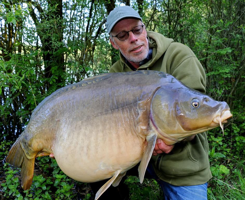 Le dimanche, dès que Christophe m’a rejoint, nous prenons 4 carpes en seulement quelques heures de pêche. Voici la plus grosse.