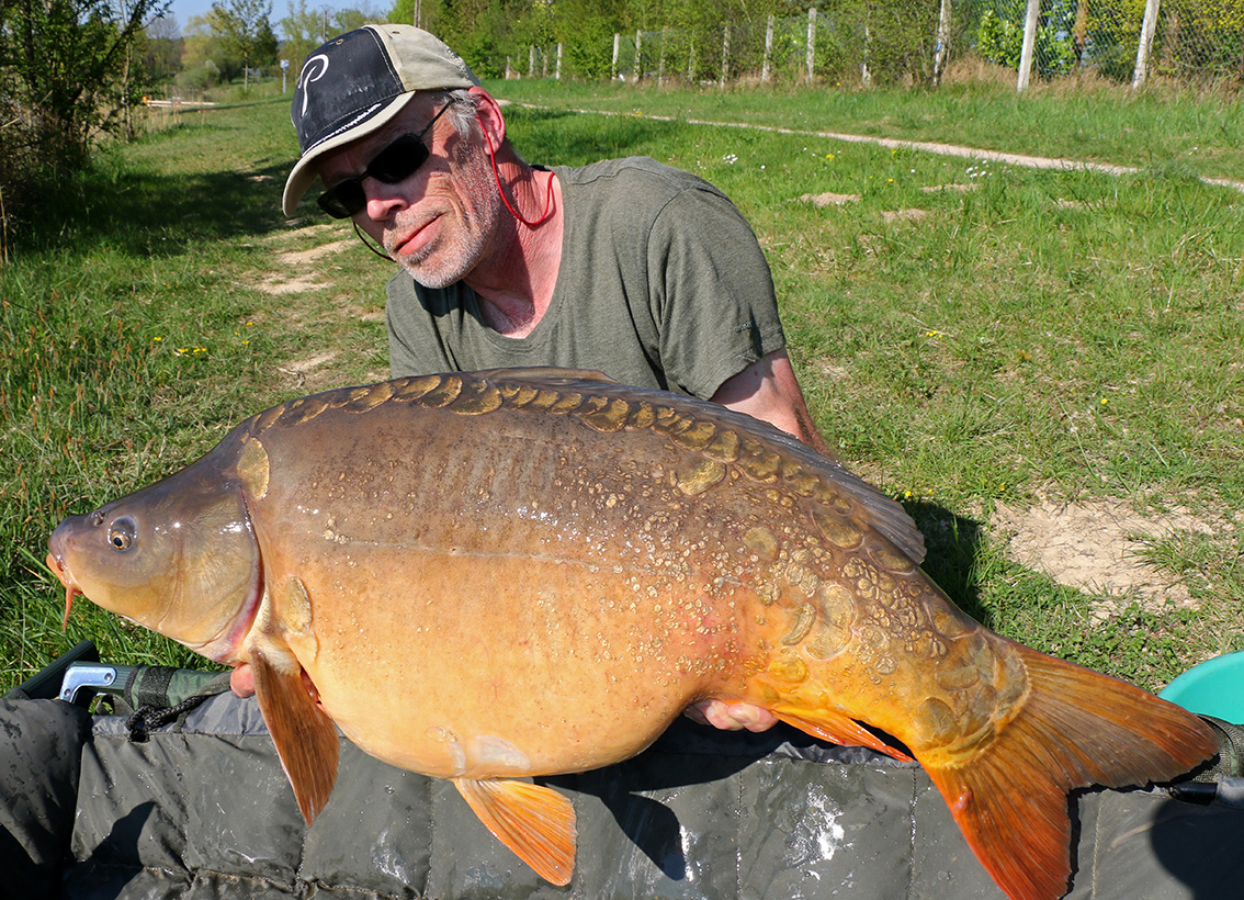 La plus belle d’une série de carpes capturées lors d’une journée de pêche à l’arrache…