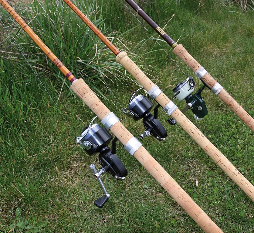Avec ces anciennes cannes on utilise des moulinets haut de gamme assortis : des Mitchell 300 pour les cannes en bambou et des ABU Cardinal 44 pour les cannes en fibre de verre !