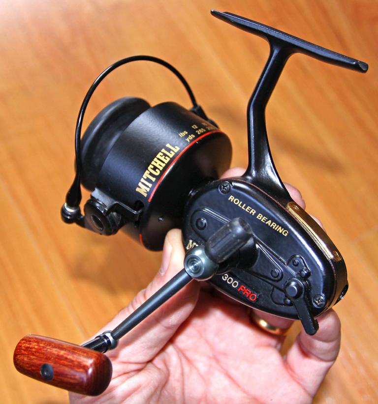 Il n’y a pas que les collectionneurs qui s’intéressent aux anciens Mitchell 300. Ce moulinet est également très populaire chez les pratiquants du « Vintage », c’est-à-dire les amoureux de la pêche à l’ancienne qui, en Angleterre et aux Pays Bas, sont assez nombreux. Le Mitchell 300 est le moulinet parfait pour les anciennes cannes à carpes en bambou refendu ou en fibre de verre. Mon préféré pour mes cannes Vintage est le Mitchell Garcia 300 C deuxième édition produit en 1976. C’est en quelque sorte un Mitchell de base 4ème version du début des années 50 optimisé avec des roulements à aiguilles et un galet tournant dans l’arc du pick-up. Je les ai optimisés davantage en les dotant d’une bobine en aluminium avec frein micrométrique. Ces moulinets sont à mes yeux parfaits pour les pêches fines de bordure.